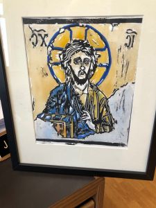 The painting above is a hand-made gift I received from Diana’s brother and sister for my ordination in 1991. It has hung in all my offices ever since I have received it. I look at it frequently. On occasion I use it as a focal point while praying. I love it. But there is a flaw. Were you able to spot it?